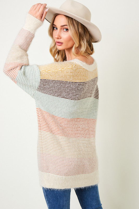 PLUS SIZE SWEATER COLOR BLOCK STRIPED TOP